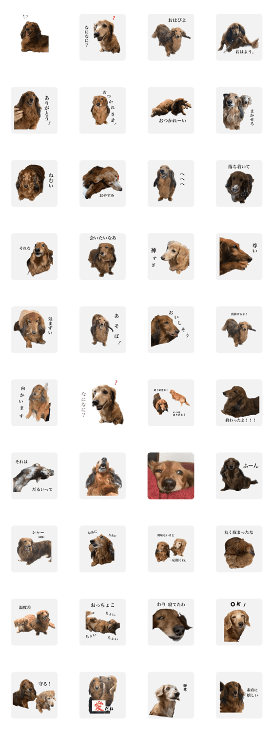 うちの実家の表情豊かな犬たちのスタンプです。日常遣いしやすい言葉をシンプルに!やっぱり可愛いうちのダックスたち〜〜♡