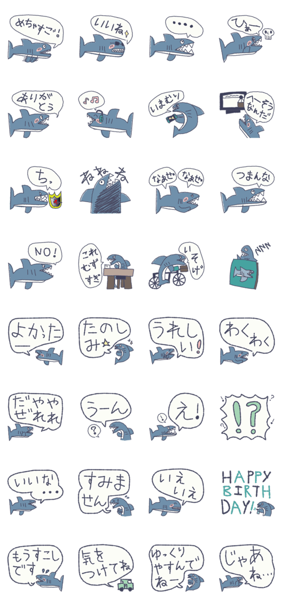 小学生が描いたサメスタンプ -LINEスタンプマニア