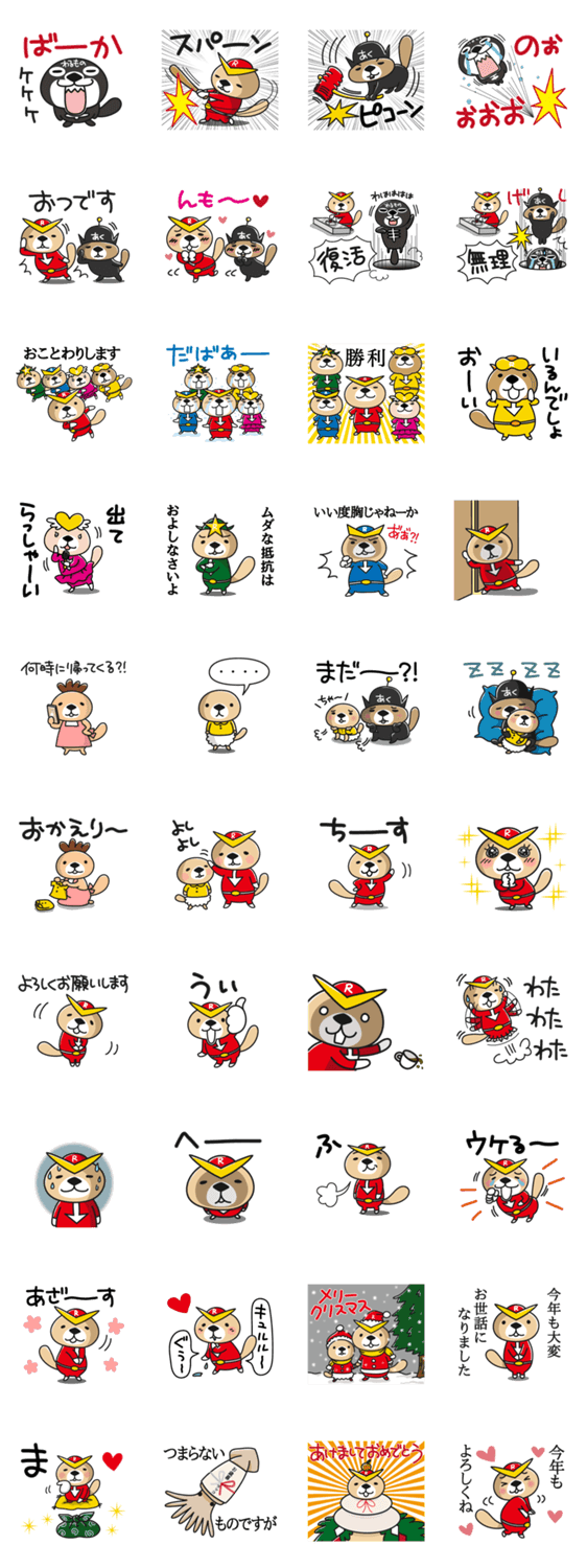 「突撃!ラッコさん」の番外編パート2。突撃戦隊ラッコマンたちが平和のために立ち上がる!年末年始に使えるスタンプも入ってます。
