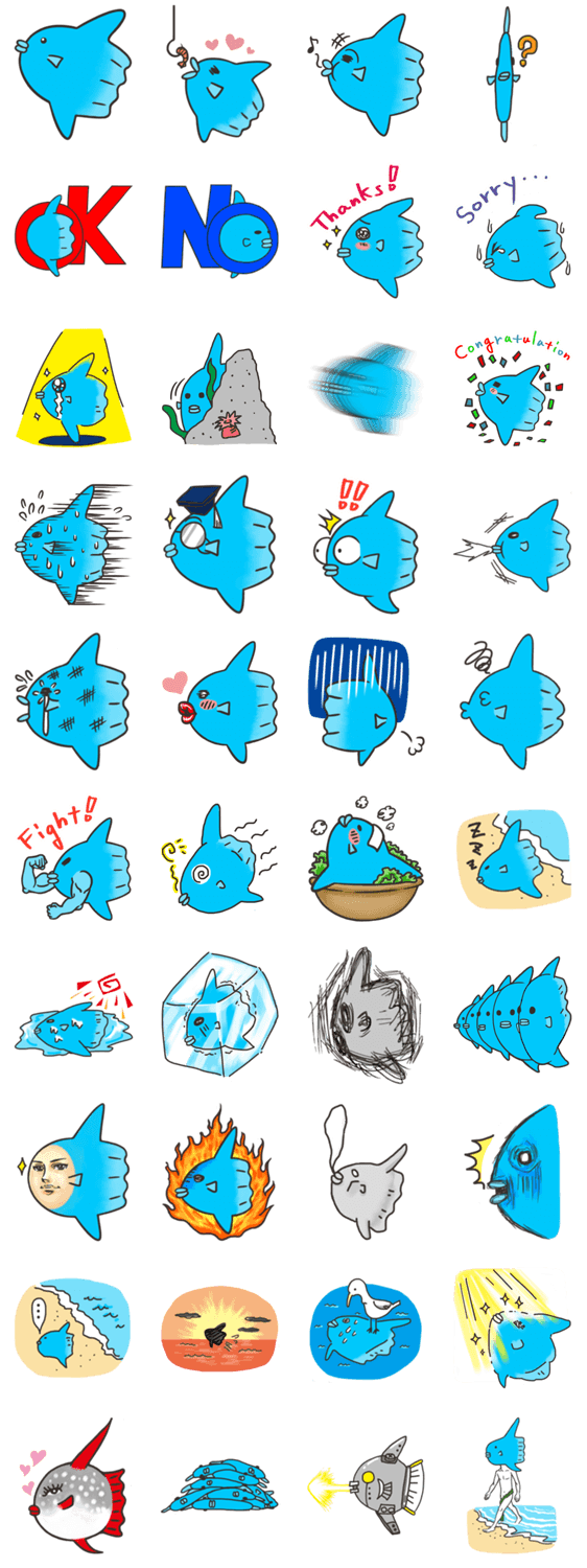 切ない、かわいい、憎めない生き物マンボウの、ほのぼのスタンプです。