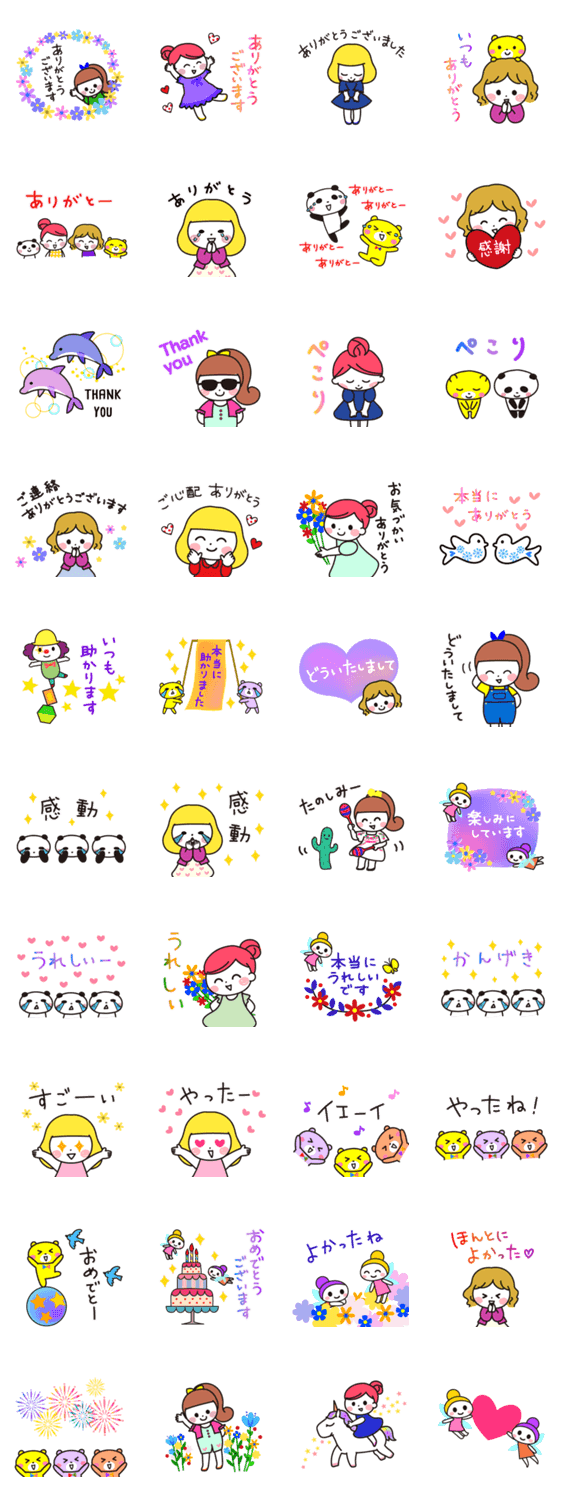 ありがとうと喜びのスタンプだけをまとめました☆