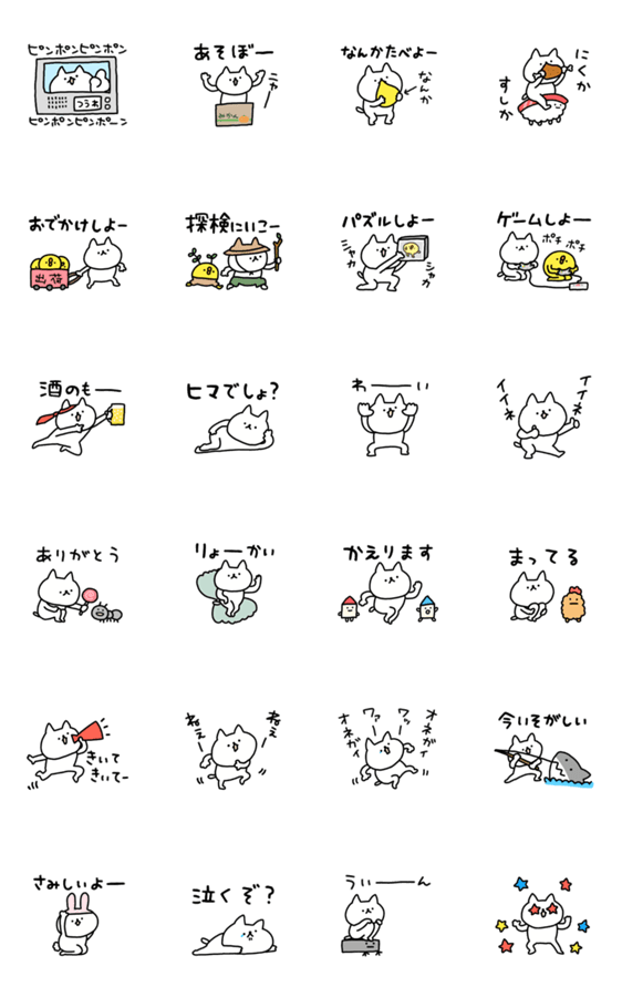 白ネコのあいうえお・・・ってるスタンプ