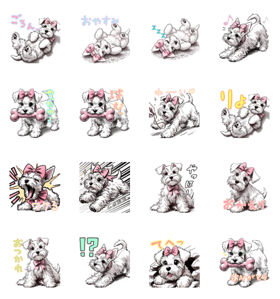 白いミニチュアシュナウザーのスタンプです。ゆるく使っていただけます。