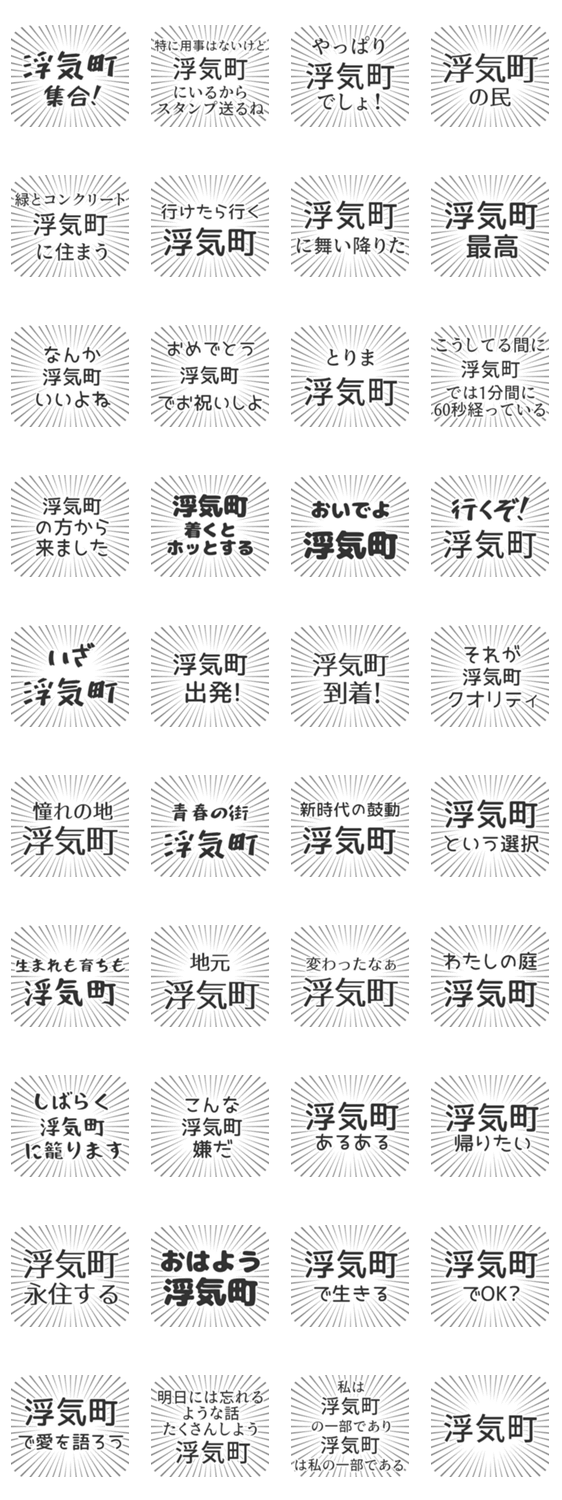 難読地名を舞台にした漫画風セリフスタンプ。集中線で叫べ。地元の人にも憧れてる人にも。面白いのが見つかると嬉しい。集中線。地元愛。珍地名