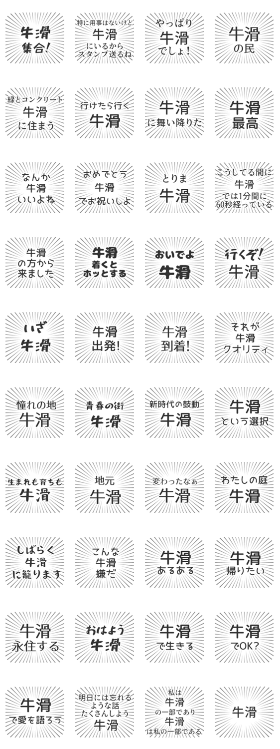 難読地名を舞台にした漫画風セリフスタンプ。集中線で叫べ。地元の人にも憧れてる人にも。面白いのが見つかると嬉しい。集中線。地元愛。珍地名