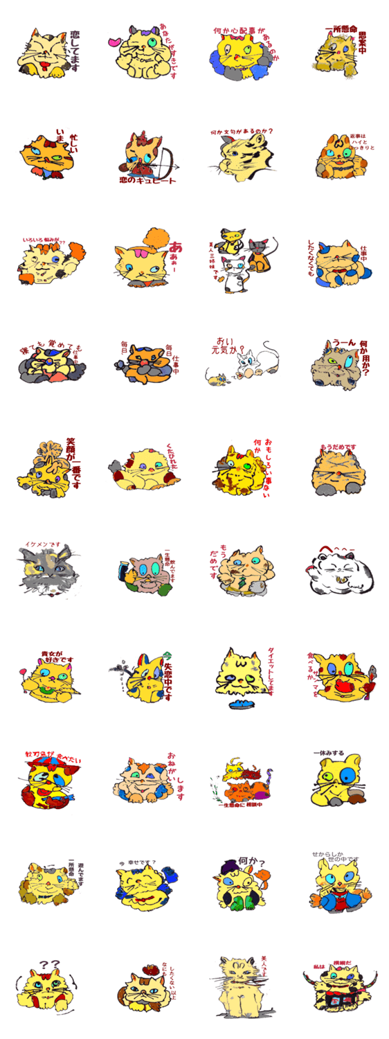 | スタンプ説明 | 我が猫神家の一族郎党は美男 美女そして可愛い子供達を今後 よろしゅうお頼み申します。 |