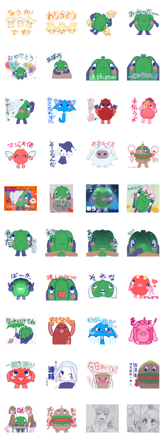 伝えにくい気持ちをスタンプで伝えよう!可愛い野菜のピーマンと仲間たち。日常で友達や家族に楽しく送ろう。後輩や先輩や上司にも推し活シュール面白い緑ベジタブルギャグ