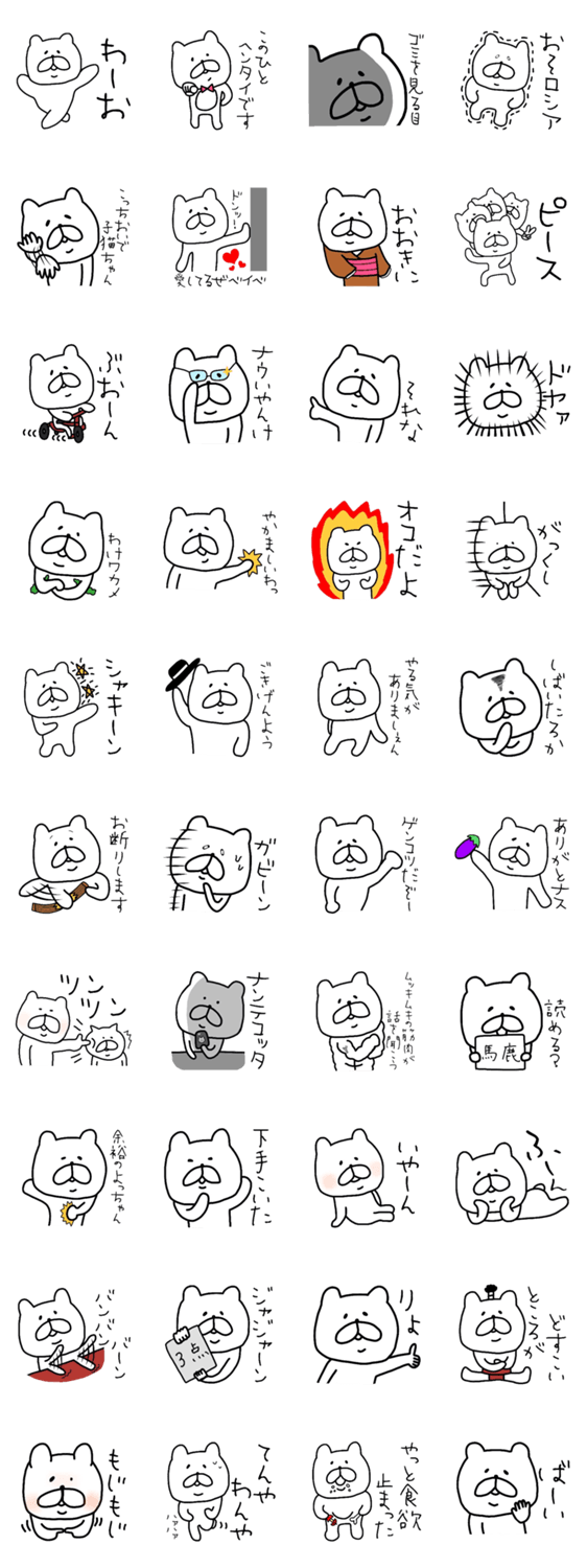 | スタンプ説明 | 第二弾になります。今回もカッコつけたり、死語を使ったり、若者を気取ったり何でもあります。誰でも使いやすく、第一弾と合わせて使って頂くと嬉しいです。 |