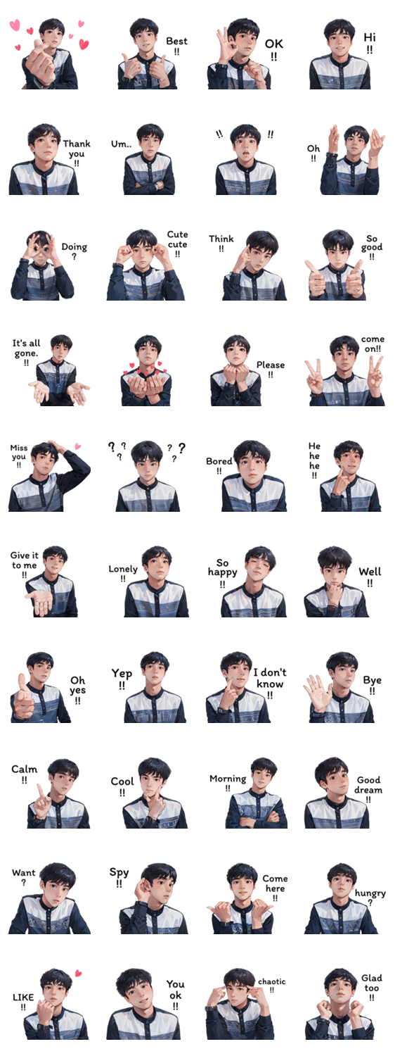 | スタンプ説明 | This cute, cool, cool young man would like to join his friends in the chat box as well. |