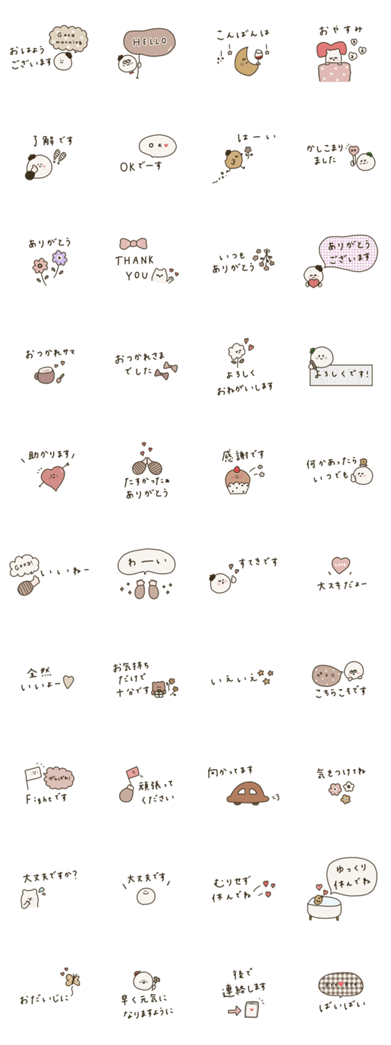 | スタンプ説明 | 大人女子でも使いやすいシンプルにまとめたスタンプです。シンプルだけどお洒落。仕事にも普段にも使えます。敬語入り。優しいお色。 |
