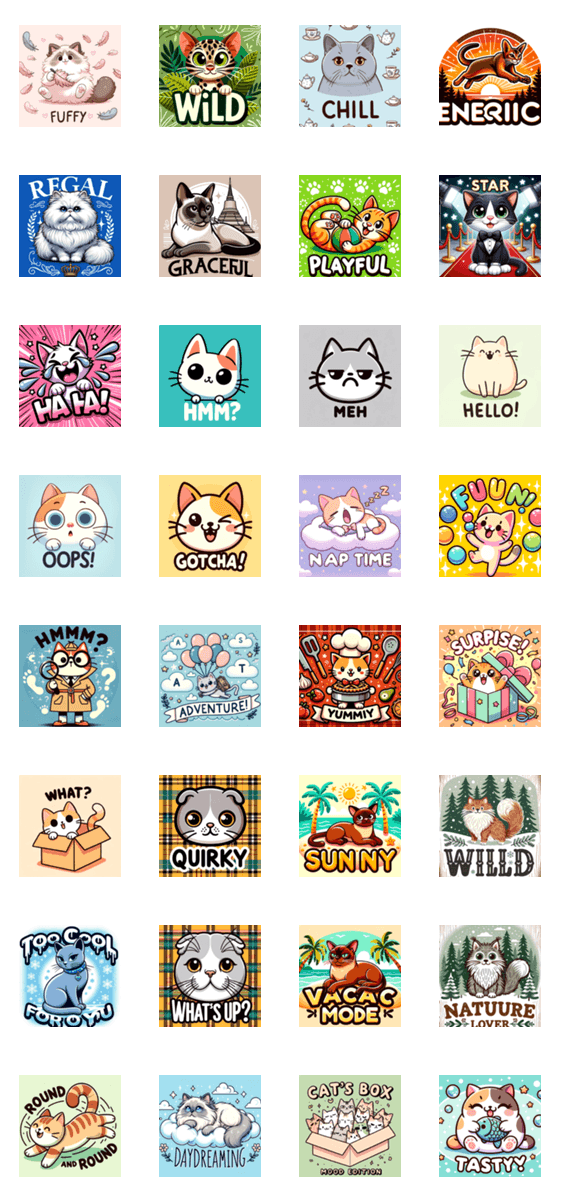 ちょっとした日常から大冒険まで、このスタンプで猫の魅力満載の毎日を楽しもう!