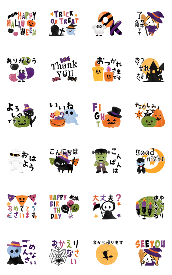 ハロウィンらしいアイテムいっぱい!キュートなハロウィンスタンプでメッセージを彩ります。