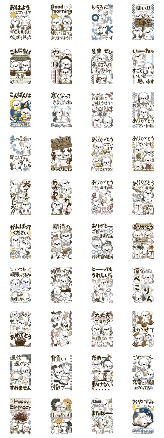 シーズー犬の初冬・よく使う言葉のスタンプです。(犬の日チャリティーキャンペーン参加スタンプです。)わんちゃんたちに幸せを♡ ※このスタンプはトークルームで大きく表示されるBIGスタンプです。