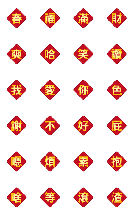 | スタンプ説明 | 新年の対句の雰囲気のあるダイナミックなスタンプです! 金色に輝く漢字、開運はシンプル、赤と黄色で開運! |