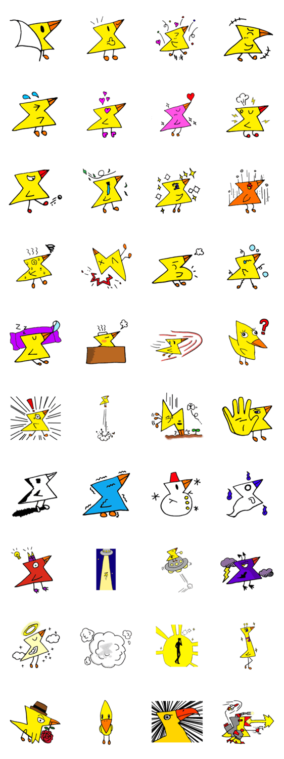カミナリのような形したアヒルさん。感情によって体の色や形がコロコロ変わります。