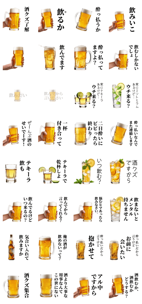 酒を飲みたいとき、酒に飲まれたいとき、酒に誘いたいとき。男子も女子も使える。【面白い/ネタ/酒/飲み会/煽る/タバコ/恋愛/彼氏/彼女/嫁/旦那/カップル/浮気/束縛】