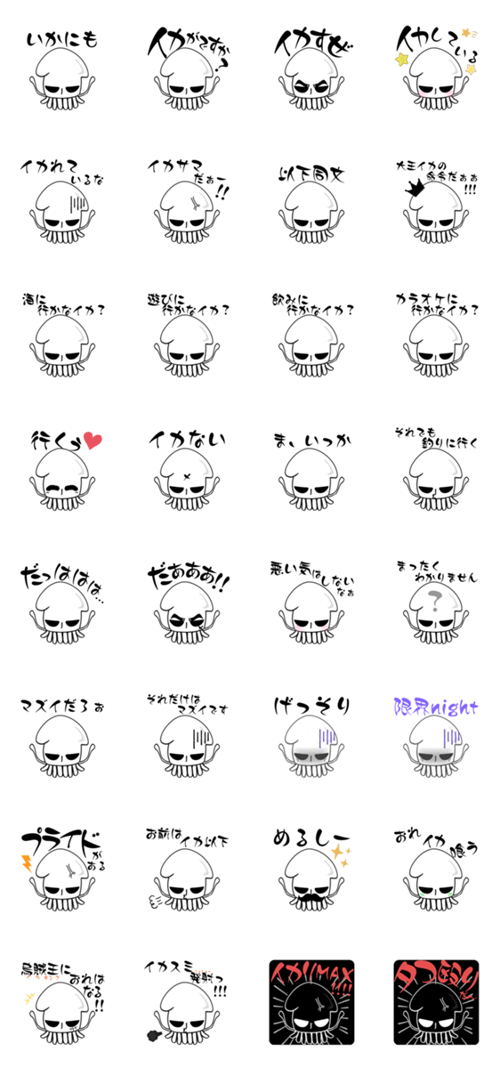 イカ課長がお送りするイカ駄洒落スタンプです。