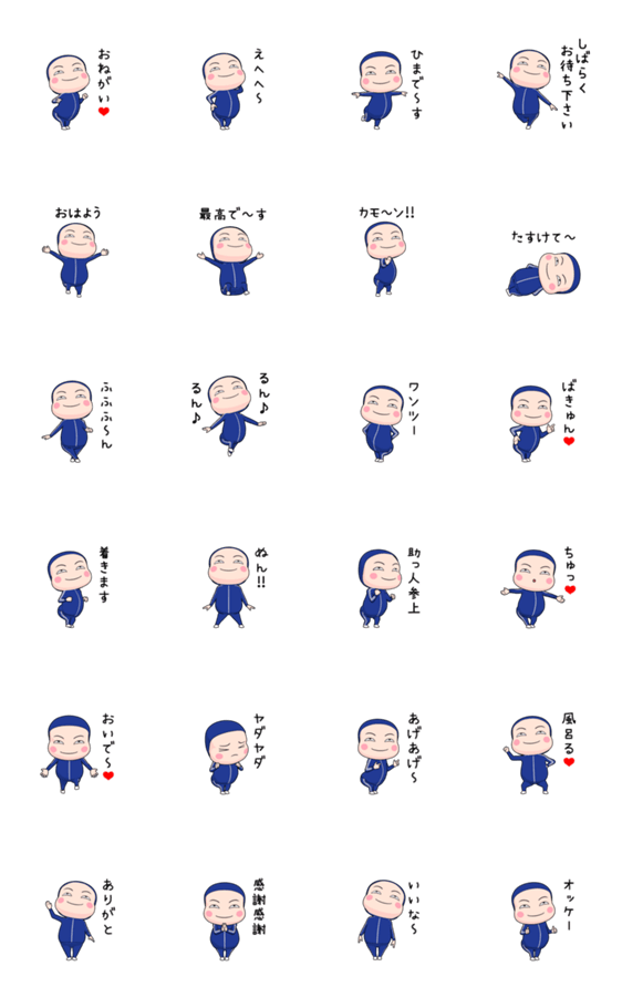 大人かわいい青ジャージの全身タイツちゃんがキュートに動く。そんなスタンプです。