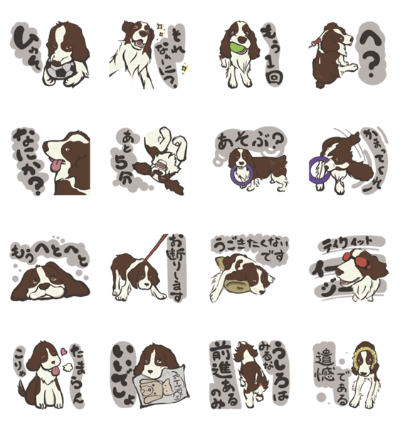 | スタンプ説明 | イングリッシュスプリンガースパニエル犬バロンくんの自由気ままな日常。 |