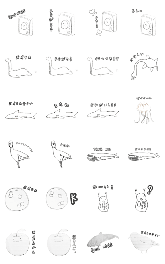 | スタンプ説明 | 可愛い手描きの色々なゆるい生き物のスタンプです。おやすみの種類がたくさんあります。 |