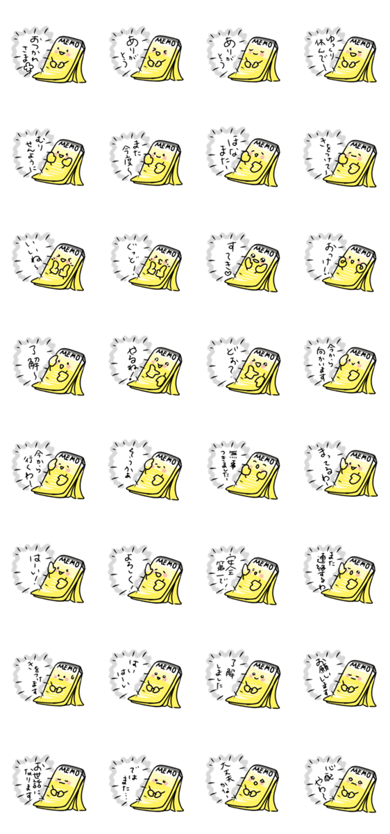日常会話を表情豊かに表現したメモ帳スタンプです。