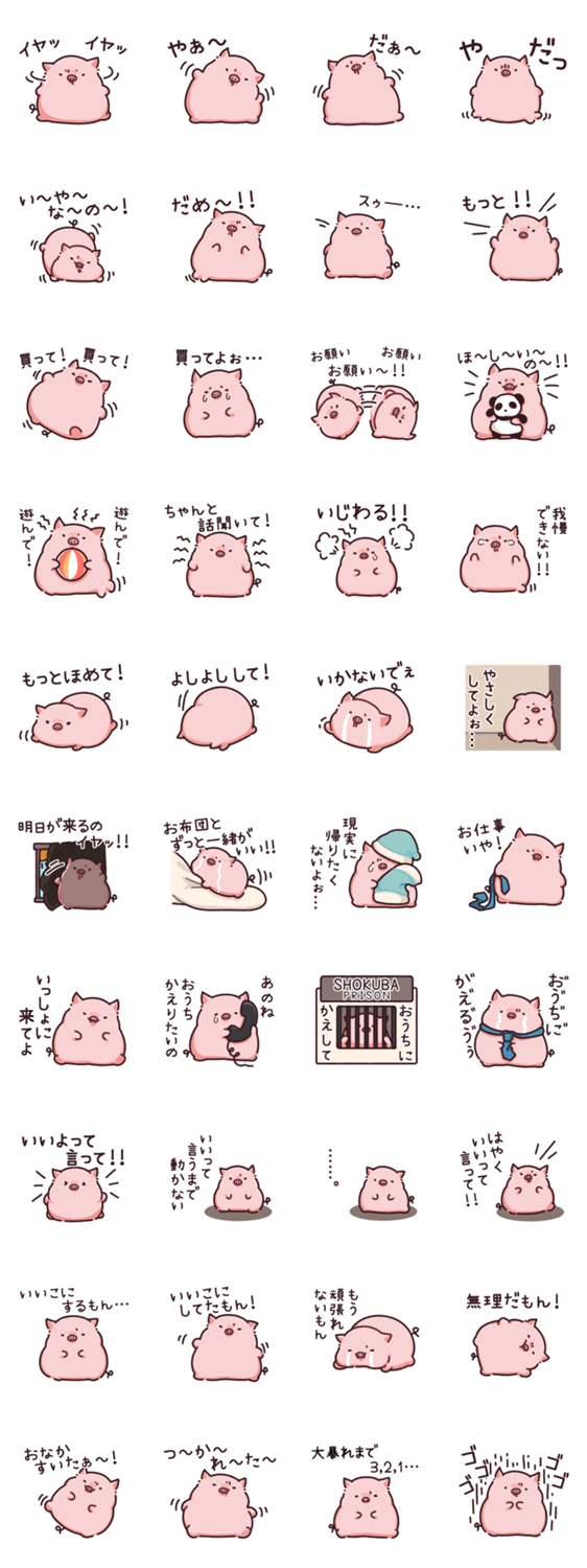 とにかく駄々をこねる、こぶたスタンプです。