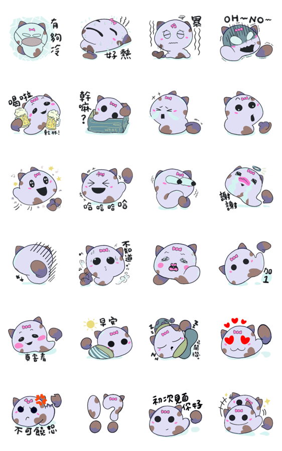 白ネコのあいうえお・・・ってるスタンプ