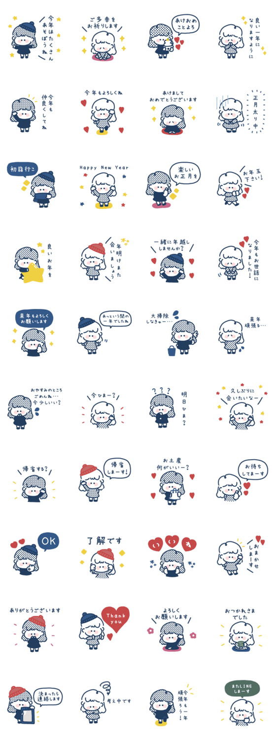 このスタンプは2024年の再販です。 1つあると便利な女の子のスタンプです。シンプル/かわいい/大人/可愛い/年末年始/あいさつ/女の子/ゆるふわ/吹き出し
