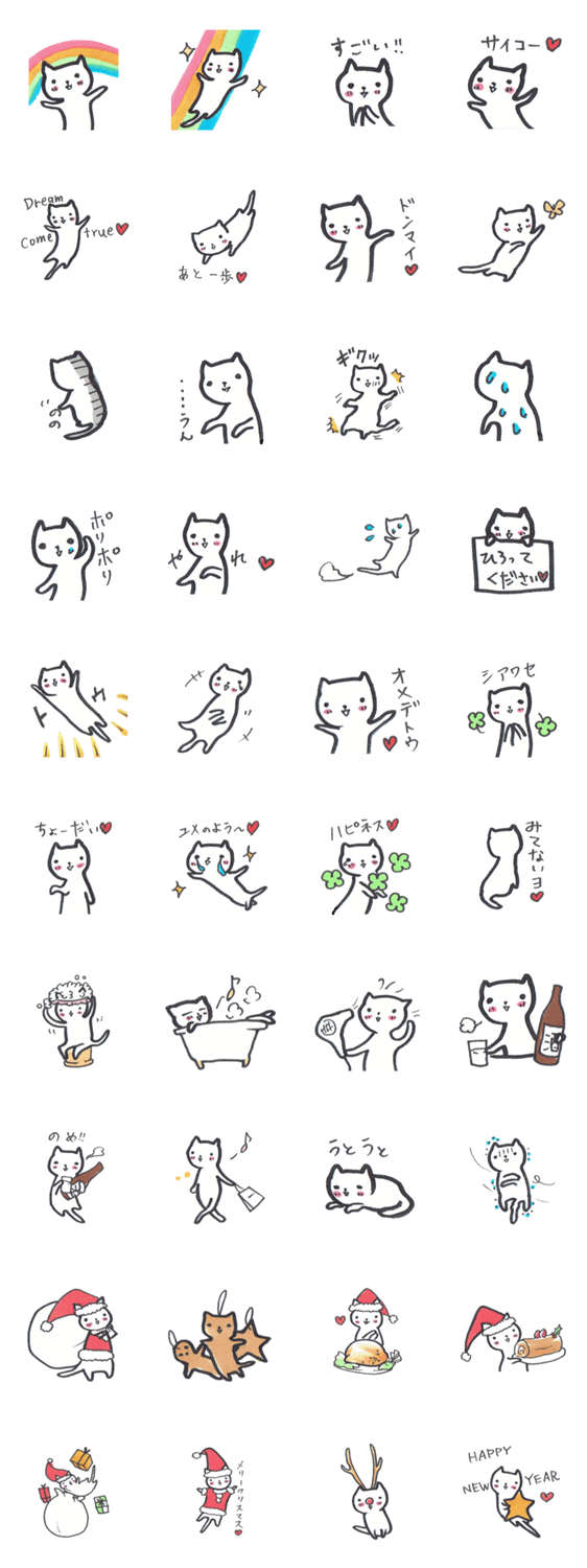 かわいい緩いしろにゃんのスタンプです☆今回はクリスマスバージョンもあります!