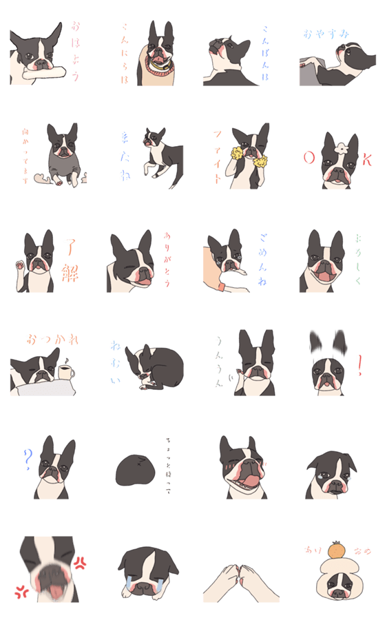 ボストンテリアのスタンプです。(字が白く見えますが、実際に使う時には変に見えません。)