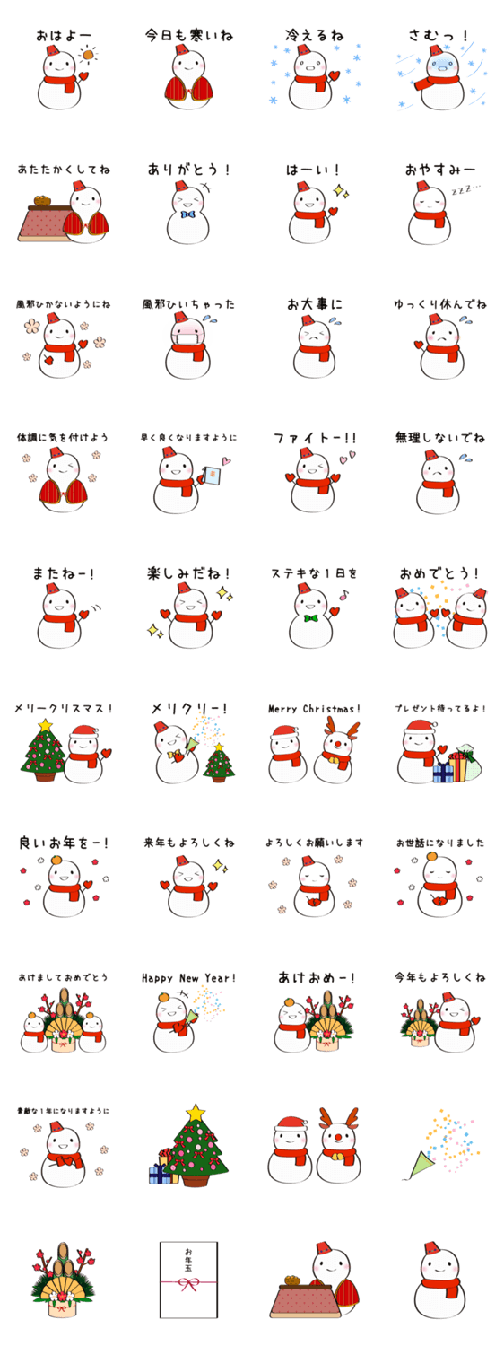雪だるまの「スノウ」のシンプルでゆるいスタンプです。 寒い季節に使えます。 (冬の挨拶、クリスマス、お正月、気づかいの言葉 など)
