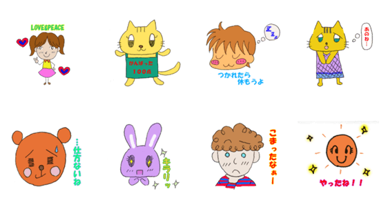 時々使えるいろんな気持ち、いろんなキャラのスタンプです。