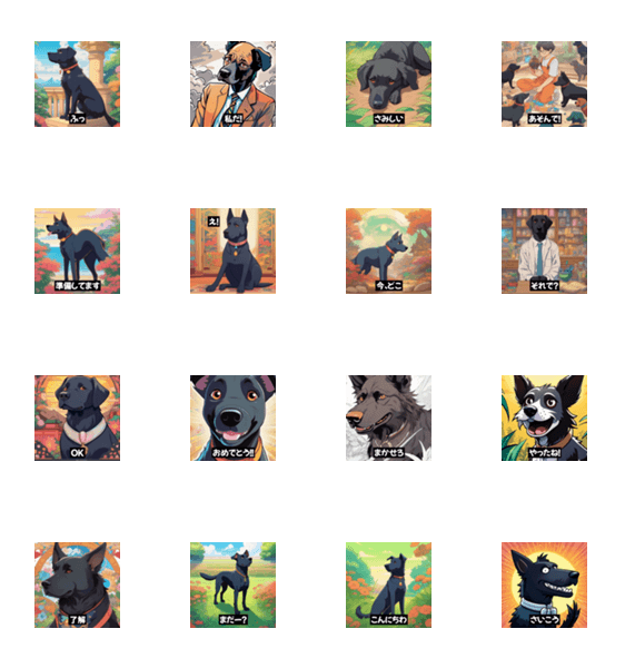かわいらしいチビ犬の16の表情とポーズ! この可愛らしいちび犬達を使って、チャットでさまざまな感情を共有しましょう