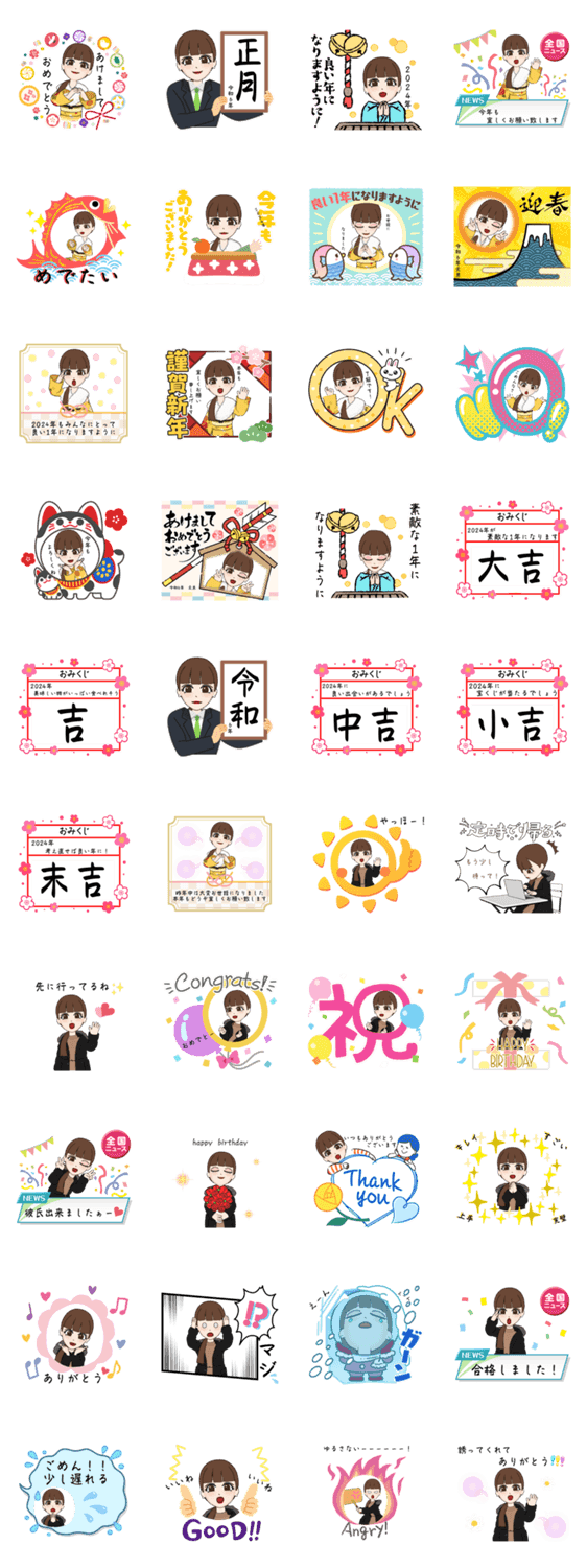 新年のご挨拶 お祝いスタンプ 40個 おめでとう! 2024年 令和6年 年明けスタンプ あけましておもでとうございます。ギャルスタンプ
