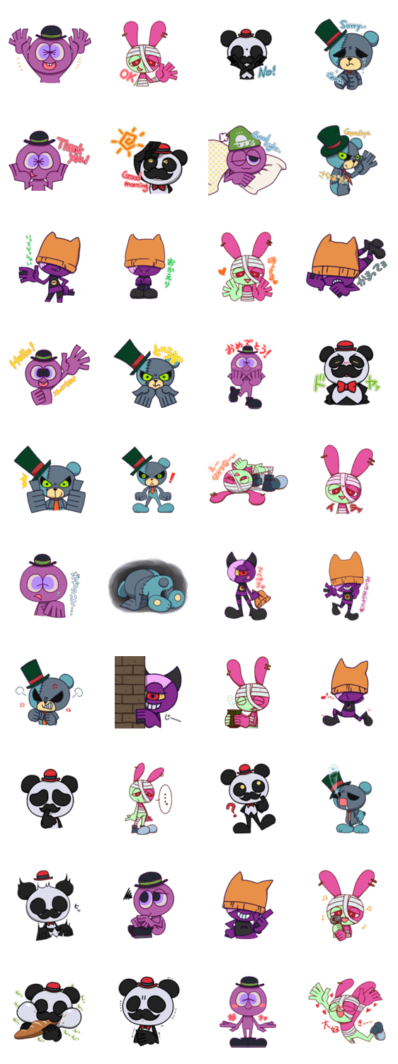 | スタンプ説明 | ちょっと不思議で、ちょっと変な彼らがスタンプになりました。カートゥーン風が好きな方は是非。 |