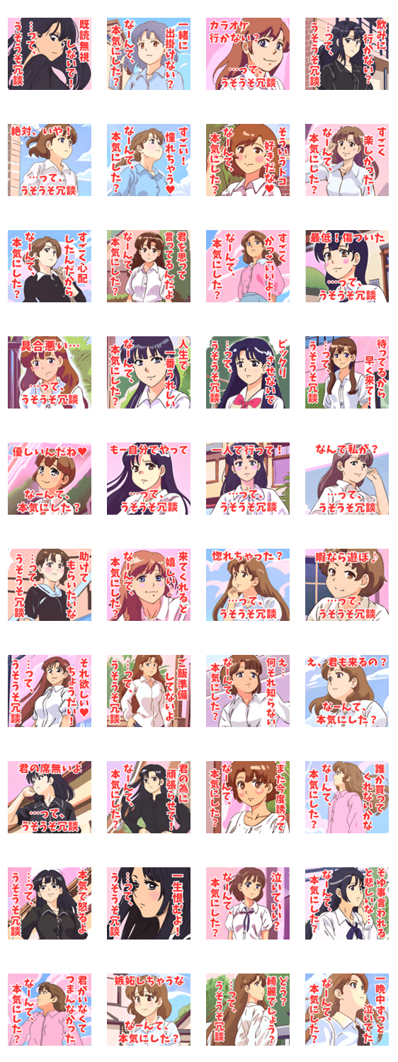 君の為にスタンプ作ったんだから使ってくれないと悲しいな…なんてうそうそ!本気にした? 自分の心を素直に伝えられない女の子たちのスタンプです。
