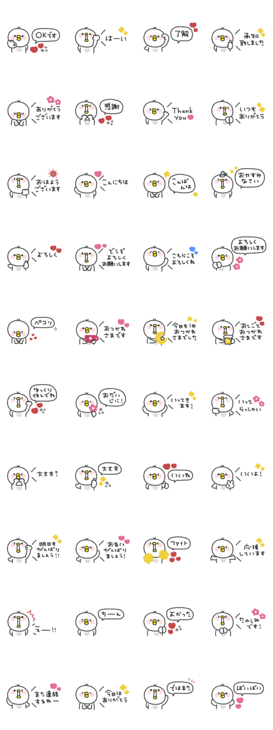 しろいとりのスタンプです。とり/あいさつ/連絡/吹き出し