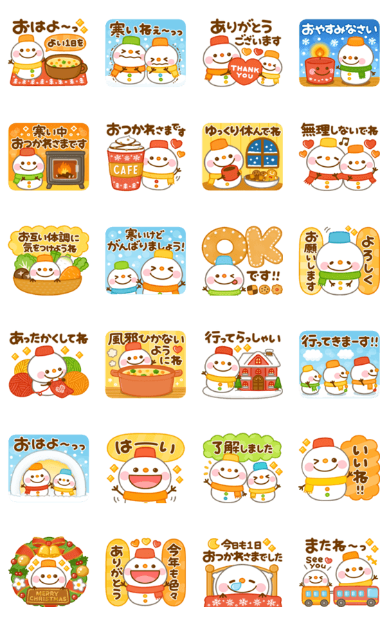あったかカラーが可愛い♡雪だるまのポップアップスタンプです。冬に役立つ言葉がいっぱい揃ってます♡