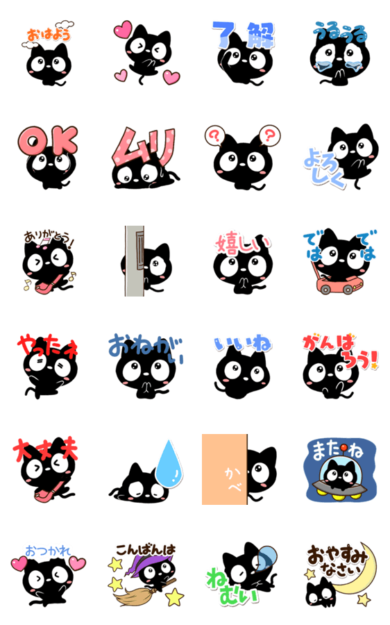画面いっぱいに飛び出す『クロネコすたんぷ』。かわいく動く毎日便利で目立つ黒猫。可愛いくろねこ好きな方にぜひ。【かたこ】アニメーション・ポップアップ・とびだす