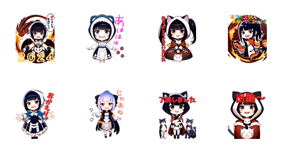| スタンプ説明 | 猫耳フードを被る可愛らしい少女が、猫や竜と楽しい挨拶。友達や大切な人へのメッセージにぴったりな心温まるスタンプコレクション。 |