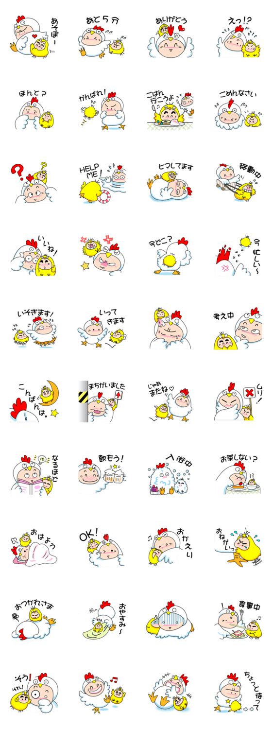 キュートなとりとひよこのスタンプ。ちょっと笑えて、わくわくする毎日のトークにぜひお使いください。