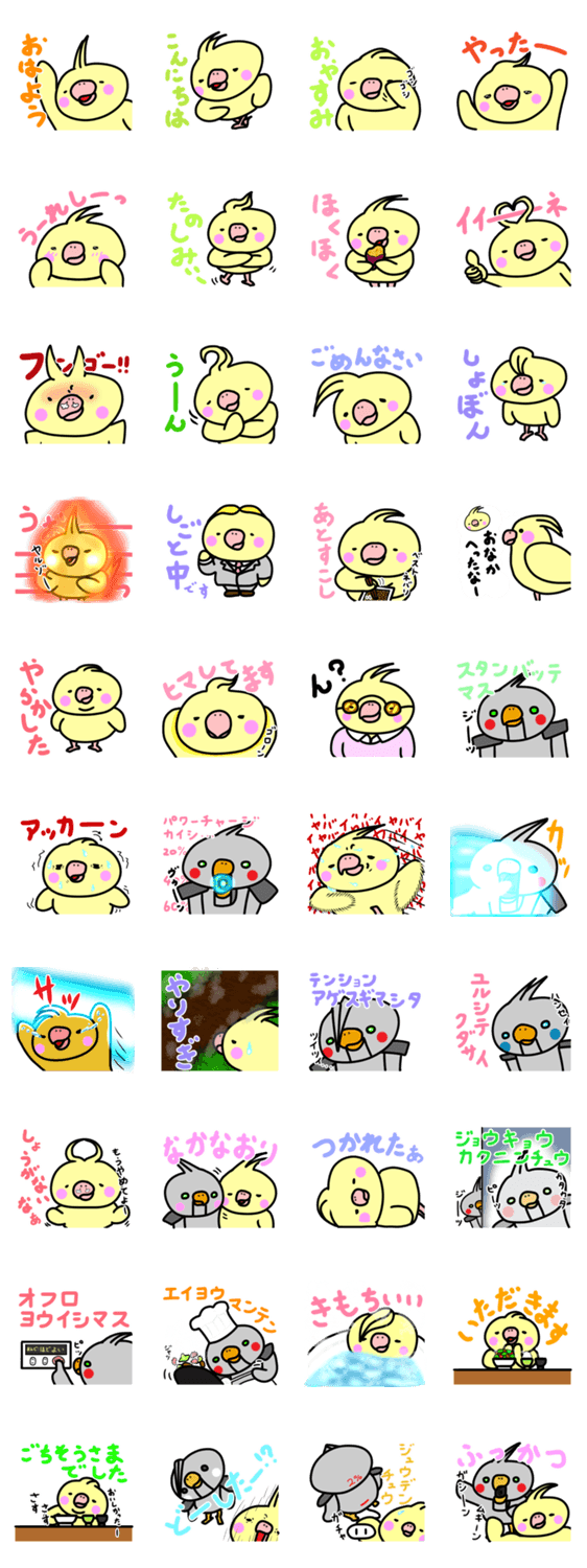 オカメインコのおかめちニコラと、興奮すると暴走するけど 実は優しい、おかめかバスタのお話調も入れたスタンプです。
