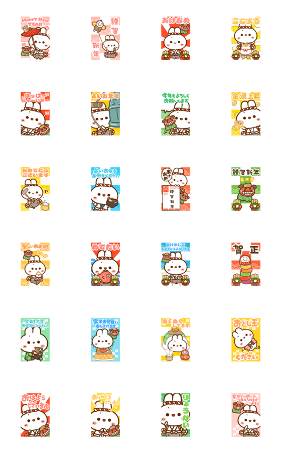 可愛く飛び出す☆うさぎさんのお正月のアニメスタンプバージョンです☆可愛いうさぎさんの正月スタンプ☆年末年始の挨拶に大活躍【キャンペーンスタンプの再販です】