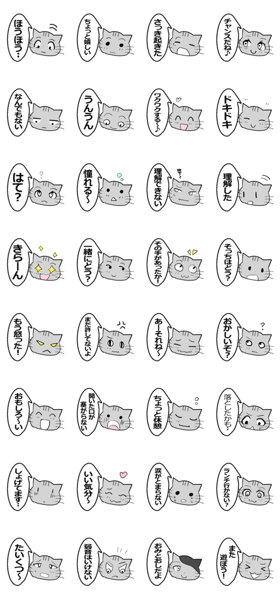 白ネコのあいうえお・・・ってるスタンプ