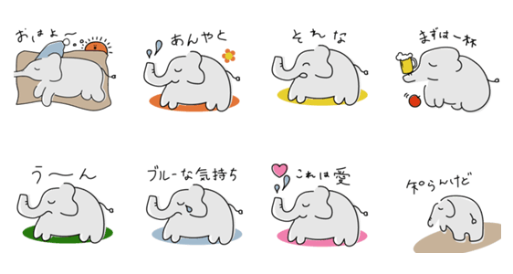 いつも寝ているぞうさんのスタンプ。今日もゆる〜くほんわかいきましょう。