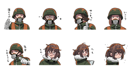 キノコ狩りをする部隊を描いたオリジナル漫画のキャラクターのスタンプです。