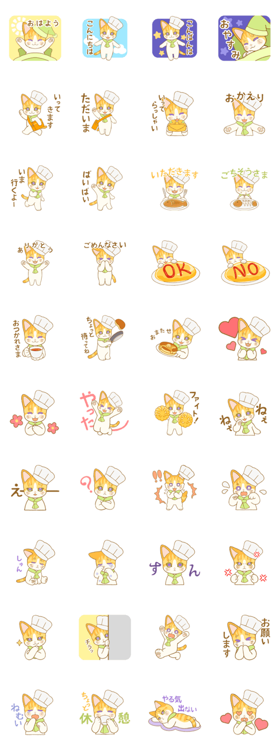 シェフにゃんこの日常的に使いやすいスタンプです。