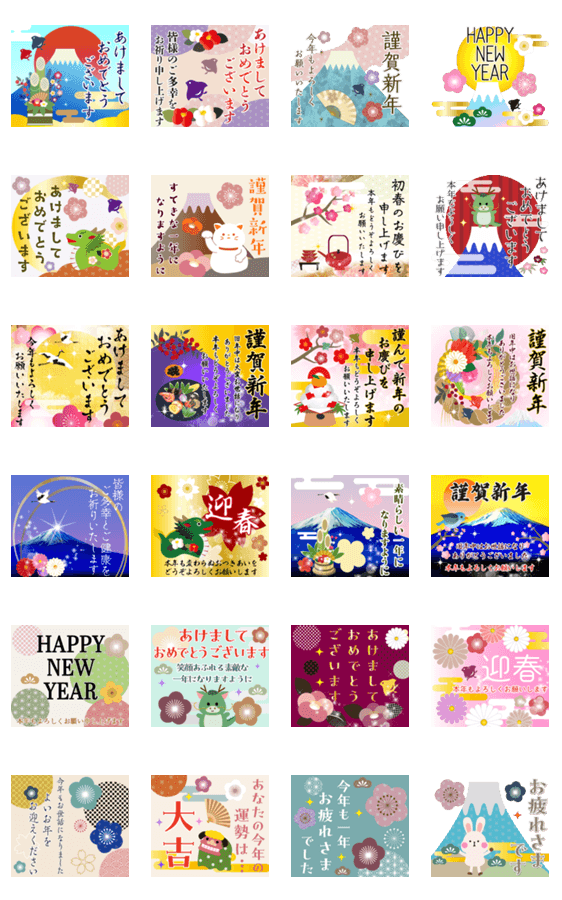 定番と和モダン年賀状の修正版です。お正月の定番と大人かわいいおしゃれな和風デザインは毎年使えるデザイン、2024年干支の辰もセットです。LINEで年賀状を送ろう!