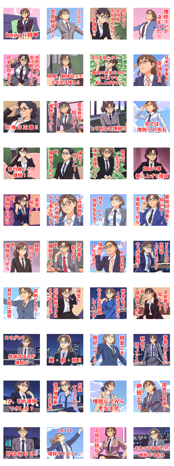 税務署で働いている女の子たちがいかにも言いそうなセリフをスタンプにしました。ジョークなので怒んないでね