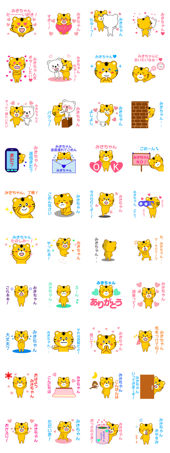 「みきちゃん」に送信するため用スタンプ!「みきちゃん」に送信する際に使うことで、みきちゃんに喜ばれ、より自分の想いをより伝えられること間違いなし!